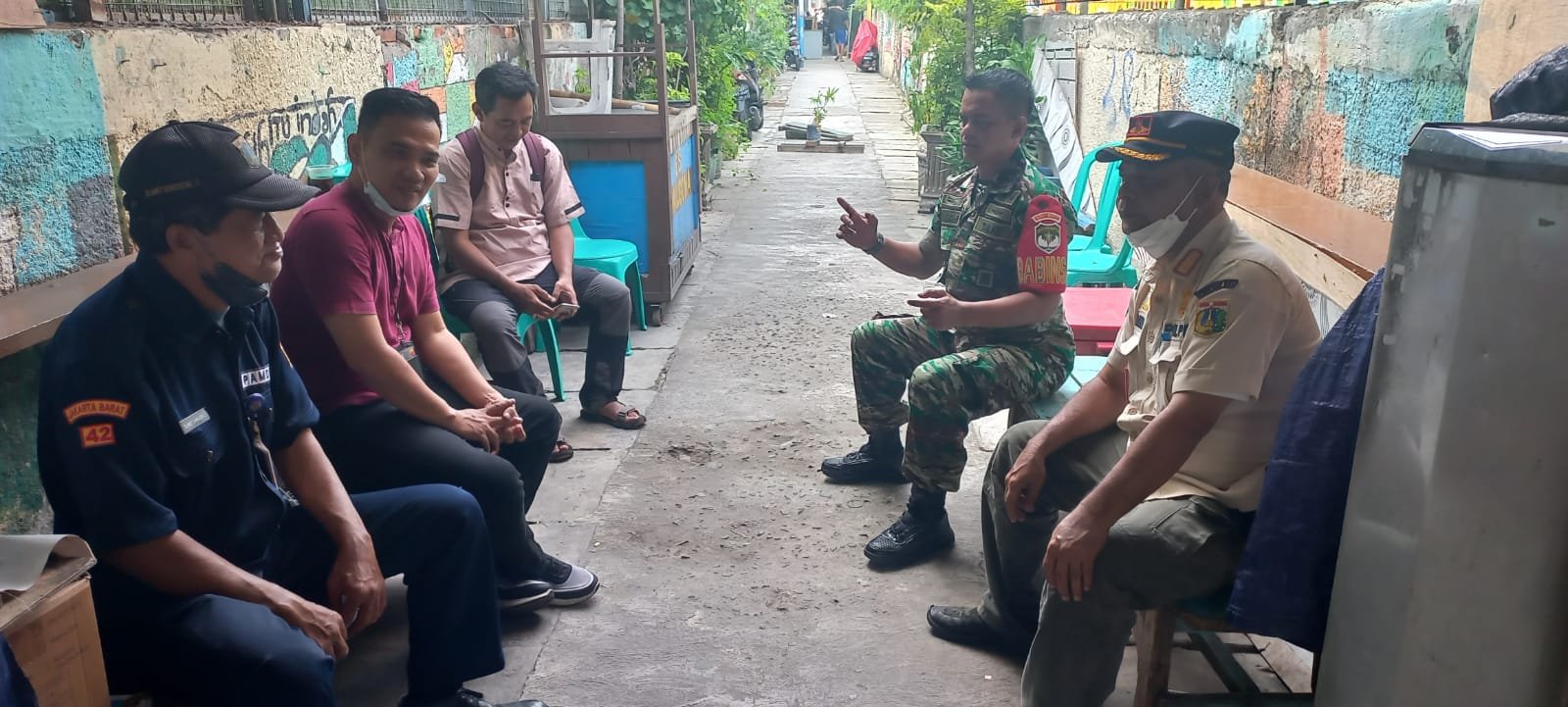 ACTUALNEWS.ID, Kodam Jaya Jakarta -Babinsa Koramil 02/TB, Kodim 0503/JB, Kel.Kalianyar, Tambora Jakarta Barat Serda Abdul Kadar Melaksanakan Komsos ( Komunikasi Sosial ) dengan Kasatpol PP Safarudin dan Slamet dari Pamdal Kel.Kalianyar, membahas terkait situasi bantuan Pemerintah kepada masyarakat Kalianyar 6 Rt.004 Rw.03 Kel. Kalianyar Kec.Tambora, Jakarta Barat, 4/11/2022.