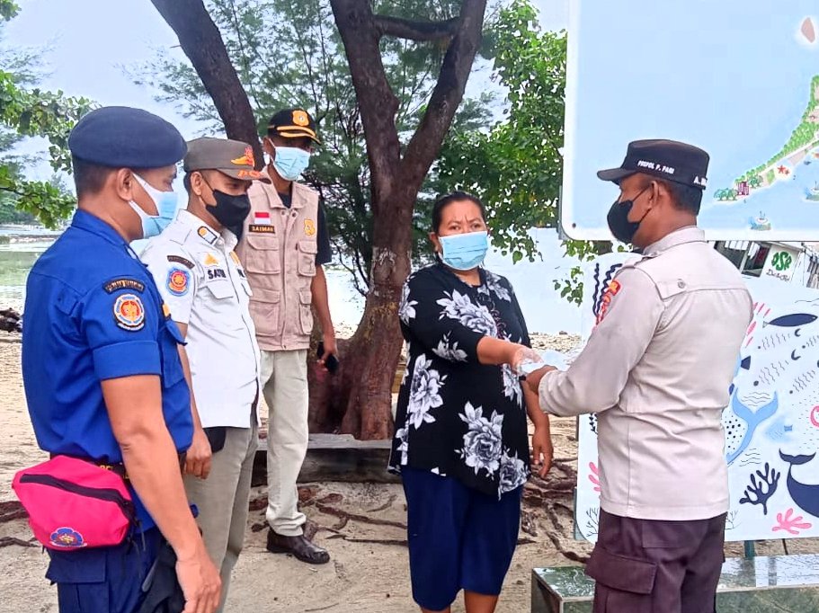 Sementara Polsek Kepulauan Seribu Selatan membagikan masker di Pulau Tidung, Pulau Pari, Pulau Lancang dan Pulau Untung Jawa.