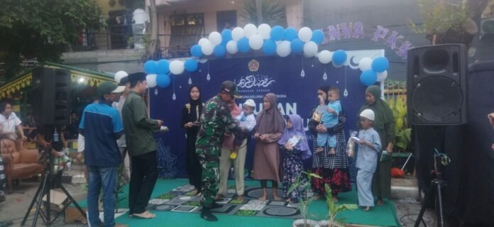 ACTUALNEWS ID, Jakarta – Di bulan suci Ramadhan Babinsa Koramil 02/TB kodim 0503/JB Serka Sinaga Bersama Tiga Pilar Kelurahan Tambora adakan kegiatan santunan kepada anak yatim piatu sebanyak 80 orang yang dilaksanakan di lapangan kelurahan Tambora di jalan Tambora 3 RT 05 RW 06 Kelurahan Tambora Kecamatan Tambora, Jakarta Barat, Minggu 9/4/23.
