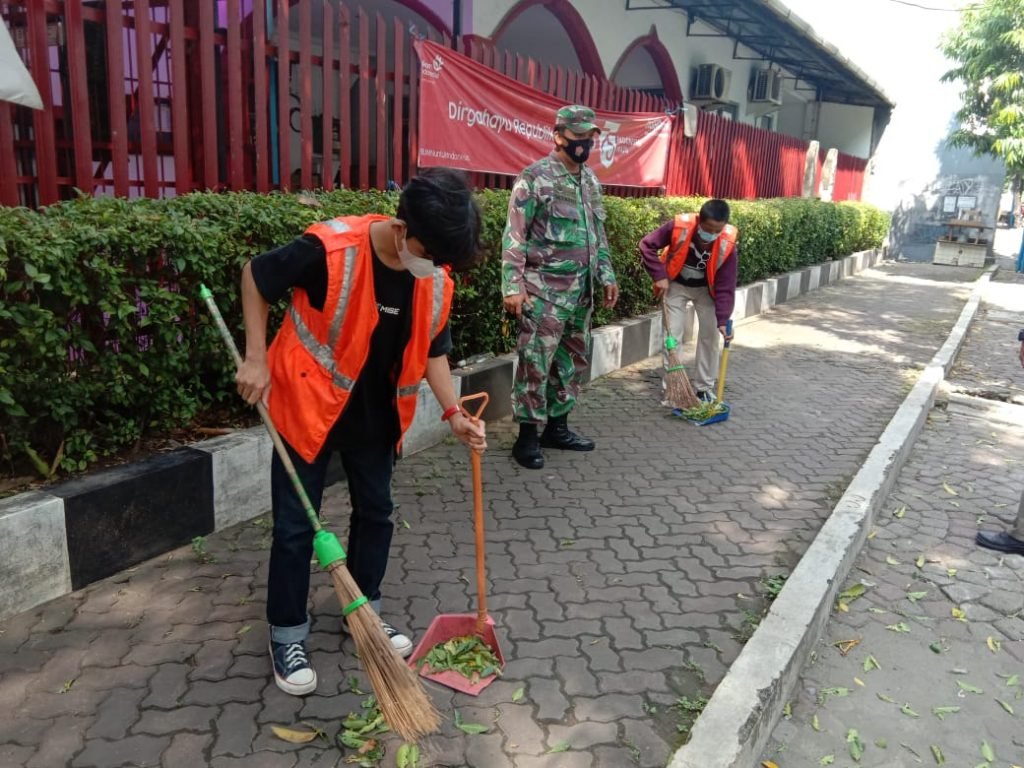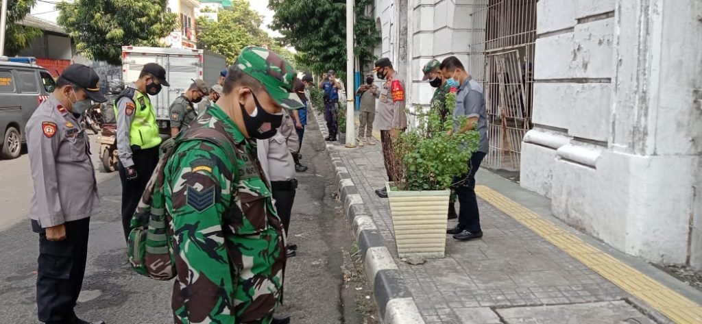 Anggota Koramil 02/Tambora bersama Tiga Pilar melaksanakan Operasi Yustisi penegakan disiplin Protokol Kesehatan yang dilaksanakan di Jl.Telkom RW.02 Kelurahan Roamalaka Kecamatan Tambora Jakarta Barat.Sabtu (5/6) pagi.