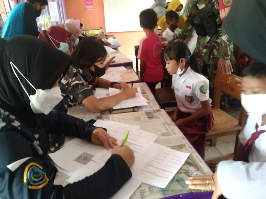 ACTUALNEWS.ID, Babel – Pangkalan TNI AL Bangka Belitung melalui Balai Kesehatan bekerja sama dengan Dinas Kesehatan Kabupaten Bangka dan Puskesmas Belinyu, kembali melaksanakan serbuan vaksinasi maritim kepada anak usia 6 sampai dengan 11 tahun di Sekolah Dasar yang berada di lingkungan Mako Lanal Babel, bertempat di SDN 19 dan SDN 20 Belinyu Kabupaten Bangka, Jum’at (18/02/2022).