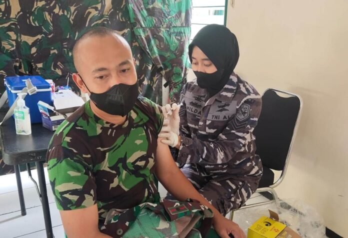 ACTUALNEWS.ID, Bandung – Tim Nakes Lanal Bandung melaksanakan Vaksin Dosis III di Yon Zipur 9 Kostrad dalam rangka serbuan Vaksin Nasional yang di ikuti oleh Prajurit dan KBT Yon Zipur 9 Kostrad bertempat di Yon Zipur 9 Kostrad, Jalan A.H. Nasution KM 10 Pakemitan, Kecamatan Cinambo, Kota Bandun, Jum’at (25/02/2022).