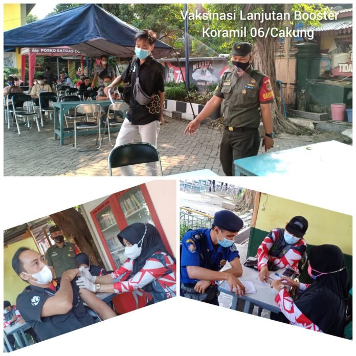 Danramil 06/Cakung Kapten Inf Supriyatno pada kegiatan Vaksinasi lanjutan Booster tersebut mengatakan, Koramil bersama Nakes Polkes 00 09 04 Matraman tetap akan memfasilitasi, melayani warga masyarakat yang akan vaksin lanjutan baik yang dosis-2 maupun Dosis-3 Booster yang dilakukan pada hari ini, kegiatan yang dilaksanakan diharapkan warga bisa dilayani vaksin Booster.
