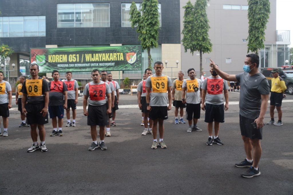 ACTUALNEWS.ID, Korem 051/Wkt – Dalam rangka meningkatkan kemampuan fisik untuk mendukung kelancaran tugas pokok di satuan, Korem 051/Wijayakarta gelar rangkaian kegiatan Kesamaptaan Jasmani Periodik I Tahun 2021