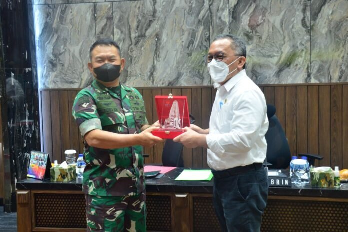ACTUALNEWS.ID, Jakarta – TNI AD menjalin kerja sama dengan Badan Riset dan Inovasi Nasional (BRIN) melalui penandatanganan perjanjian kerja sama dalam rangka mengoptimalisasikan pengembangan serta pemanfaatan riset dan inovasi bagi kedua lembaga yang dilakukan oleh Kepala Staf Angkatan Darat Jenderal TNI Dudung Abdurachman, S.E., M.M., dan Kepala Badan Riset dan Inovasi Nasional Dr. Laksana Tri Handoko, M.Sc., di Ruang Bina Yudha II Mabesad, Jakarta Pusat. Kamis, (17/3/2022).