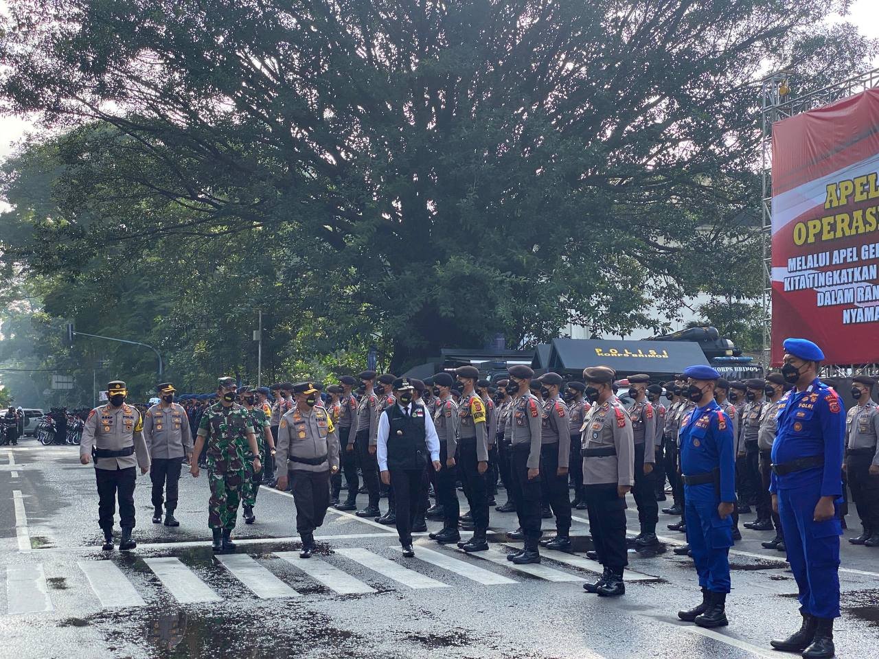 ACTUALNEWS.ID, Bandung – Pasops Lanal Bandung Mayor Laut (P) Bambang Sugeng beserta 1 SST Pasukan Lanal Bandung yang dipimpin Kasi Ops Sops Lanal Bandung Letda Laut (E) Ayi Jalaludin mengikuti Apel Gabungan Operasi Lilin Lodaya 2021 Tingkat Provinsi Jawa Barat yang dipimpin langsung oleh Gubernur Jabar Dr. H. Ridwan Kamil, S.T., M.U.D, dengan tema “Melalui Apel Gelar Pasukan Operasi Lilin Lodaya-2021 Kita Tingkatkan Sinergi Polri, TNI dan Intansi Terkait Dalam Rangka Memberikan Rasa Aman dan Nyaman Pada Perayaan Natal 2021 dan Tahun Baru 2022”, bertempat di depan Kantor Pemerintah Provinsi Jabar (Gesat), Jalan Diponegoro No.22 Kota Bandung, Kamis (23/12/2021).