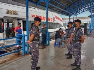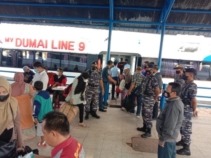 ACTUALNEWS.ID, Dumai – Dalam rangka perayaan Natal 2021 dan menyambut Tahun Baru 2022, Personel Pangkalan TNI Angkatan Laut Dumai bersama unsur-unsur terkait lainnya melaksanakam Pengawasan dan Pengamanan di Pelabuhan Sri Junjungan Dumai, Minggu (26/12/2021).