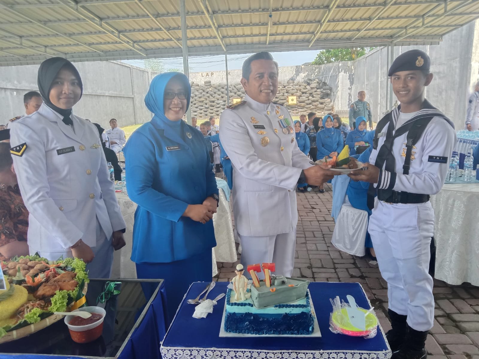 Usai pelaksanaan Upacara dilanjutkan acara syukuran dan pemotongan tumpeng oleh Danlanal Lhokseumawe didampingi Ketua Jalasenastri Cabang 6 Korcab I DJAI Ny. Indri Dian Suryansyah dan potongan pertama diberikan kepada prajurit termuda di Lanal Lhokseumaw Kld Bah Andre Sanjaya.