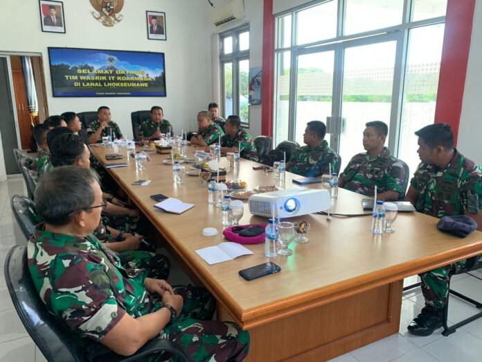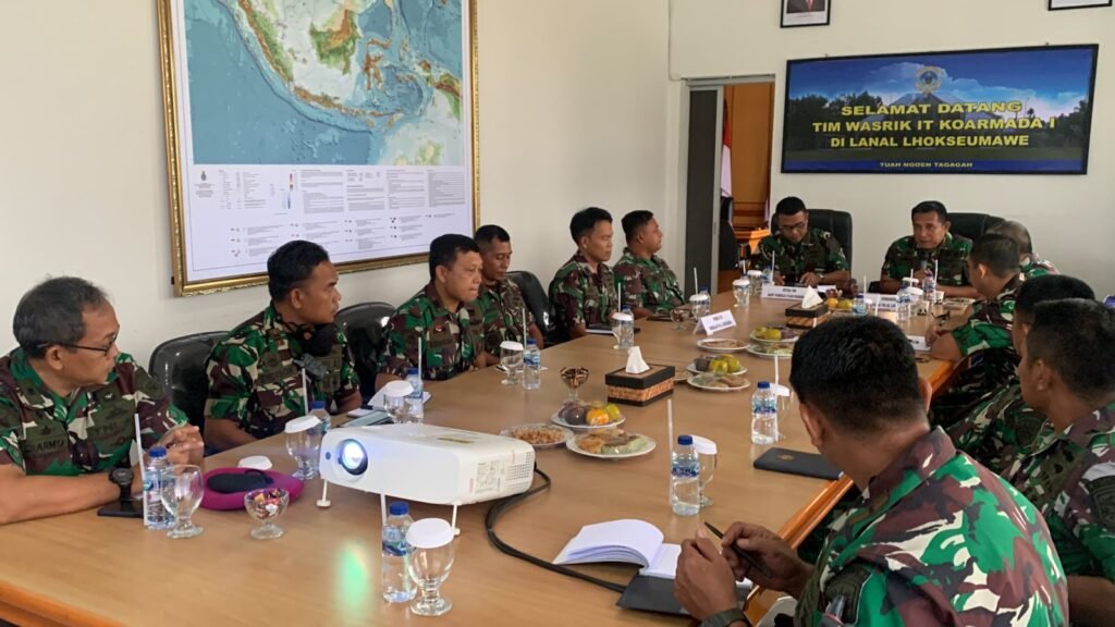 ACTUALNEWS.ID, Aceh Utara – Pangkalan TNI Angkatan Laut (Lanal) Lhokseumawe menerima Tim Pengawasan dan Pemeriksaan Inspektorat Komando Armada I (Wasrik It Koarmada I) yang dipimpin Kolonel Laut (S) Winarko Sihwidodo, CRMP., didampingi Kolonel Laut (T) Heru Sriyanta, S.T., dan Letkol Laut (P) Muanam Sholeh, di Mako Lanal Lhokseumawe, Jalan KKA KM.2 Paloh Igeuh, Kecamatan Dewantara, Kabupaten Aceh Utara, Kamis (31/3/2022).