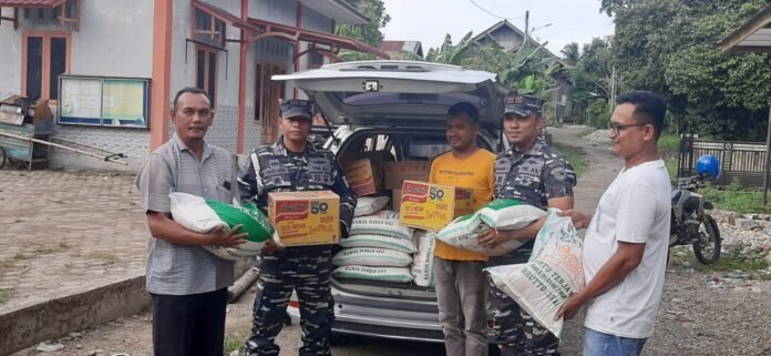 ACTUALNEWS.ID, TNI AL, Sabang,- Pangkalan TNI Angkatan Laut (Lanal) Sabang melalui Posal Malahayati dan Posal Lhoknga menyalurkan bantuan sembako kepada masyarakat Teupin Batee dan Cot Leuot, Kecamatam Blang Bintang, Kabupaten Aceh Besar yang terkena dampak banjir, Jumat (16/12/2022).