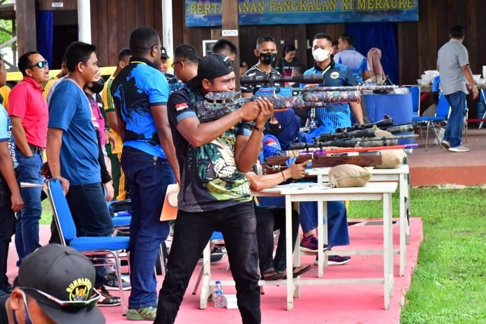 ACTUALNEWS.ID, Merauke – Dalam rangka menyambut hari jadi Ke-13 yang jatuh pada tanggal 15 Januari 2022 mendatang, Pangkalan Utama TNI Angkatan Laut (Lantamal) XI Merauke menggelar Lomba Menembak Air Rifle yang dihelat di Lapangan Tembak Mako Yonmarhanlan XI Kabupaten Merauke bekerja sama dengan Perbakin Merauke dan dibuka lansung oleh Komandan Pangkalan Utama TNI AL (Lantamal) XI Brigjen TNI (Mar) Edy Prakoso, S.E., Sabtu (08/01/2022).