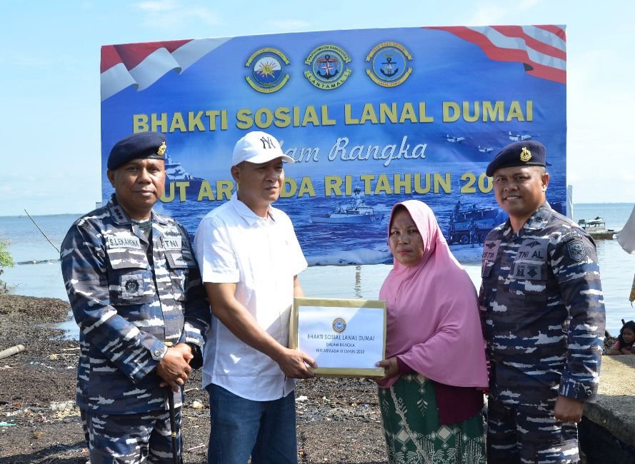 Sementara itu, Komandan Lanal Dumai dalam sambutannya menyampaikan bahwa kegiatan Bhakti Sosial yang kita laksanakan ini merupakan rangkaian kegiatan dalam rangka menyambut HUT Armada Republik Indonesia Tahun 2022 dan merupakan salah satu tugas pokok TNI AL khususnya Lanal Dumai dalam melaksanakan pembinaan potensi maritim sebagai kekuatan pertahanan.