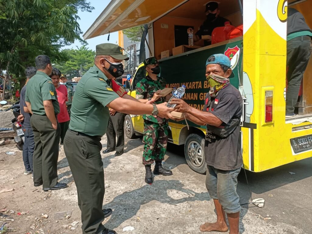 ACTUALNEWS.ID, Kodam Jaya Jakarta -Kodim 0503/JB melalui Koramil 02/TB bagikan makanan siap saji secara gratis kepada Warga di Jl.Pejagalan raya RT 002/05 Kel.Pekojan Kec.Tambora Jakarta Barat.kamis (21/7) pukul 09.00 wib.