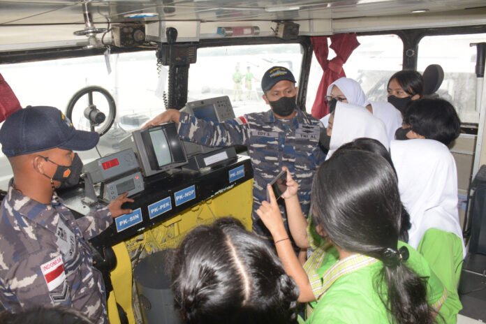 ACTUALNEWS.ID, Belawan,- Kapal perang yang merupakan simbol eksistensi Tentara Nasional Indonesia Angkatan Laut, kini menjadi salah satu tujuan wisata edukasi bagi sekolah-sekolah di Indonesia, baik untuk tingkatan Sekolah Dasar (SD), Sekolah Menengah Pertama (SMP), maupun Sekolah Menengah Atas (SMA), seperti yang dilaksanakan oleh siswa-siswi dari Yayasan Gedong Johor Medan dan Yayasan Primbana kota Medan yang mengunjungi Pangkalan Utama TNI Angkatan Laut (Lantamal) I guna melihat sedari dekat kapal-kapal perang yang sandar di Dermaga Mako Lantamal I, Jalan Serma Hanafiah Belawan, Jumat (24/06/2022).