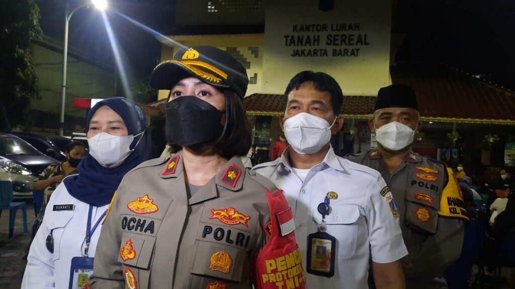Kegiatan vaksin Covid-19 ini salah satu kegiatan vaksinasi malam hari yang digelar Polsek Metro Tambora, Rabu, 16/3/2022 yanh berlangsung dari Senin sampai Jumat di lokasi berbeda wilayah Tambora.