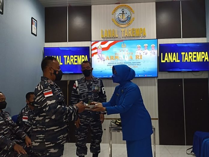 Upacara HUT Armada RI tahun 2021 di Lanal Tarempa kali ini, diikuti oleh seluruh Prajurit Lanal Tarempa baik Perwira, Bintara, Tamtama dan Pegawai Negeri Sipil di tutup dengan acara Potong Tumpeng yang dihadiri oleh Ketua Cabang 3 Korcab IV DJA I Ny. Fionna Yovan A. beserta pengurus, acara diselenggarakan di ruang Media Call Centre Mako Lanal Tarempa dilanjutkan dengan pemberian Tumpeng kepada Perwira termuda di Lanal Tarempa, selama pelaksanaan upacara berjalan dengan aman dan lancar.