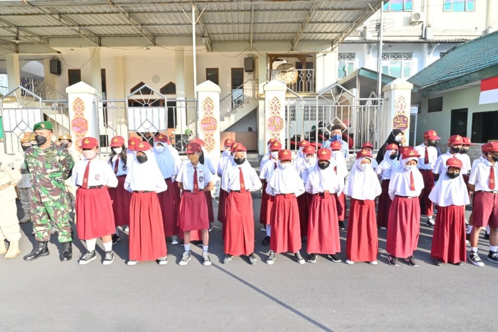 Dengan khidmad anak-anak SDN 1 Mulur yang bergabung dalam upacara bendera Kodim 0726/Sukoharjo tampak menghayati betul setiap rangkaian upacara bendera sampai dengan selesai, Senin (18/07/2022)