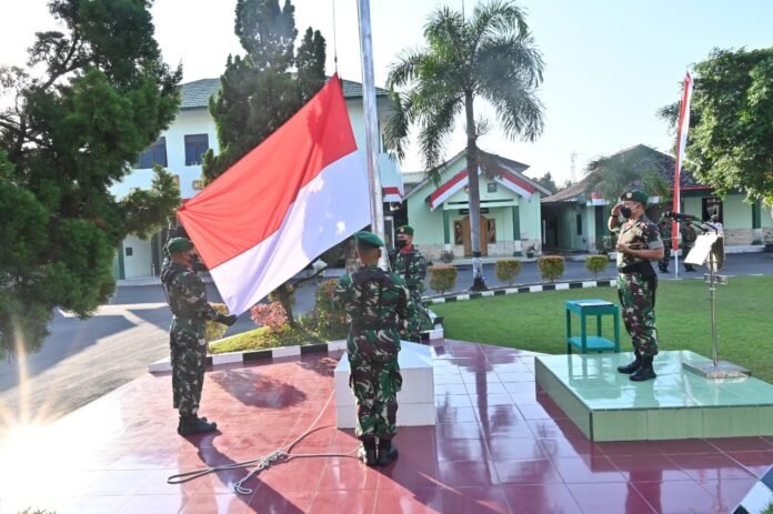 Bertindak selaku inspektur upacara Dandim 0726/Sukoharjo Letkol Inf Agus Adhy Darmawan, S.I.P, M.I.Pol. diikuti oleh para anggota Militer maupun PNS Kodim 0726/Sukoharjo.