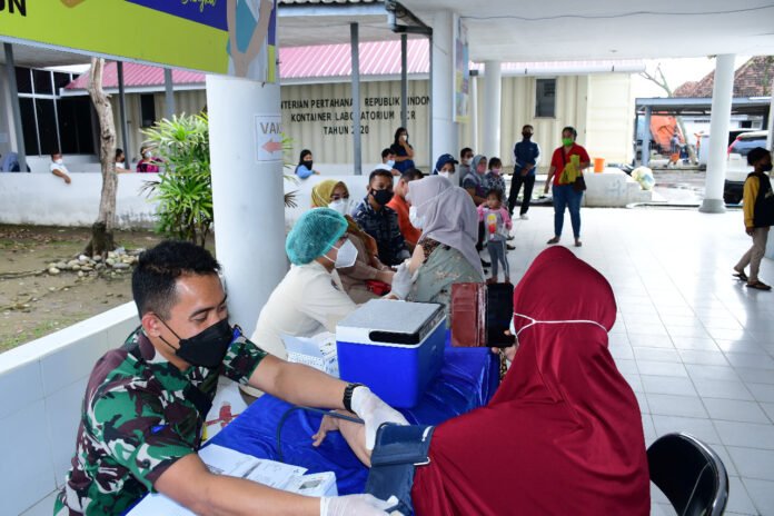 ACTUALNEWS.ID, Belawan – Pangkalan Utama TNI Angkatan Laut I (Lantamal I) terus mendukung program pemerintah untuk menuntaskan Covid-19 di wilayah Belawan. Hal ini terlihat saat personel dari Dinas Kesehatan Lantamal I yang terus menggelar vaksinasi, bertempat di Rumah Sakit TNI Angkatan Laut (RSAL ) Komang Makes, Medan Belawan, Kamis(03/02/2022).