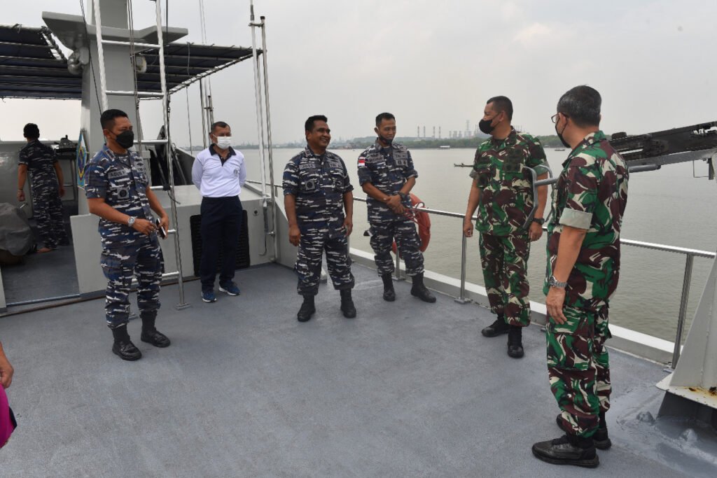 ACTUALNEWS.ID, Belawan,- Wakil Komandan Pangkalan Utama TNI Angkatan Laut (Lantamal) I Belawan Kolonel Marinir Amir Kasman yang mewakili Danlantamal I Kolonel Laut (P) Johanes Djanarko Wibowo bersama Pejabat Utama Lantamal I menerima kunjungan dan silaturahmi dari Kepala Pusat Pengkajian Strategi Penelitian dan Pengembangan Tentara Nasional Indonesia (Kapusjianstralitbang TNI) Mayjen TNI Jhony Djamaris beserta rombongan di Mako Lantamal I, Jalan Serma Hanafiah Belawan, Jumat (4/2/2022).