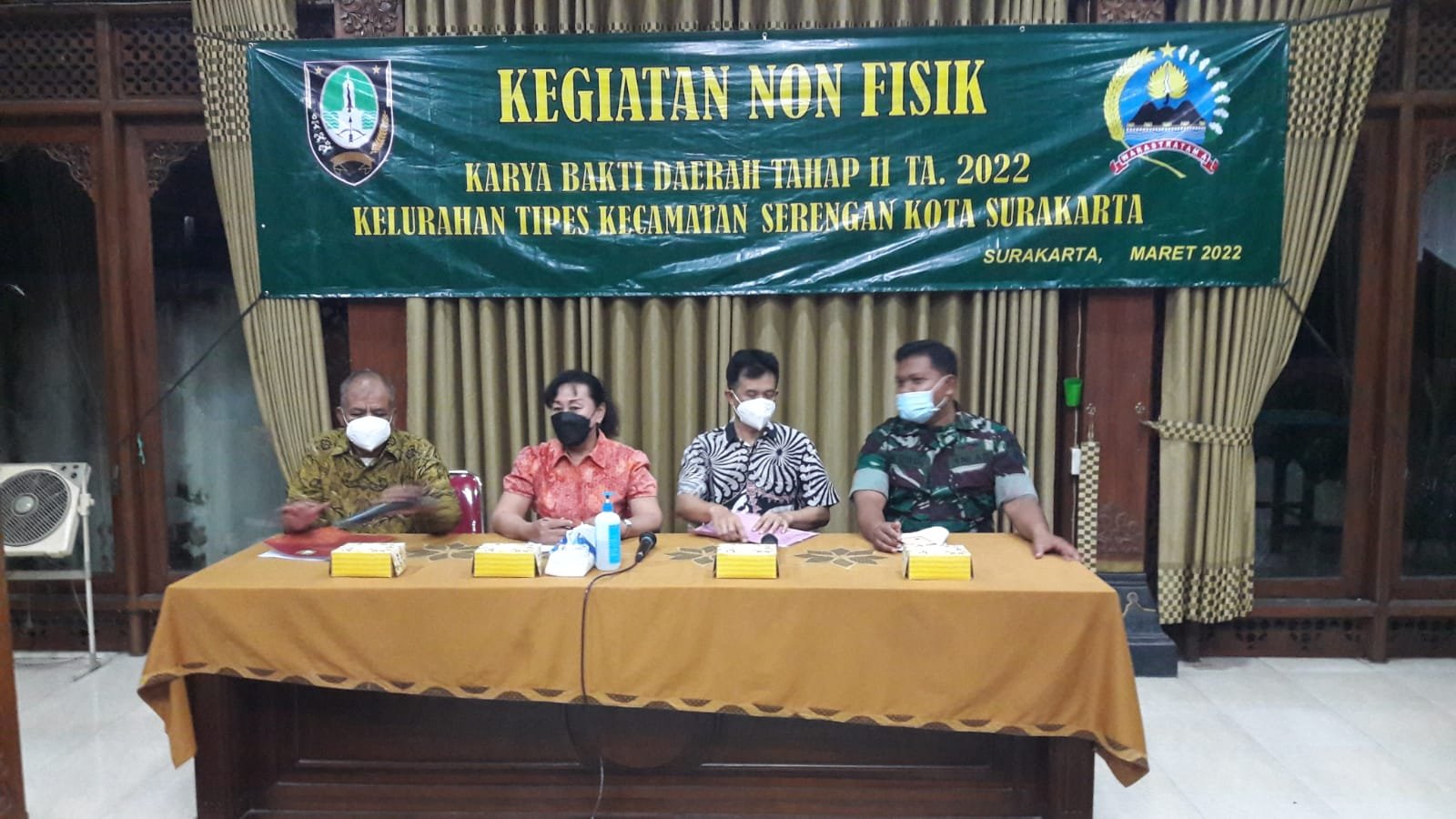 ACTUALNEWS.ID, Surakarta – Babinsa Kelurahan Tipes Koramil 03/Serengan Sertu Sarmin dan Sertu Anjasmoro menghadiri kegiatan Non Fisik berupa penyuluhan tentang Wawasan Kebangsaan (Wasbang) pada kegiatan Karya Bakti Daerah KBD Tahap II Tahun 2022 yang bertempat di Pendopo Kel. Tipes Jl.Cokrobaskoro III RT 03 RW 05 Kelurahan Tipes Kecamatan Serengan Kota Surakarta, (14/03/2022)