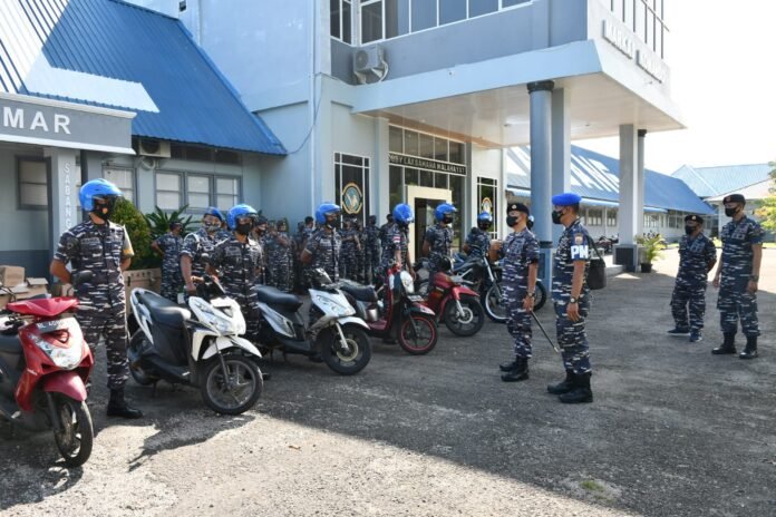 ACTUALNEWS.ID, Sabang – Dalam rangka mewujudkan tertib berlalu lintas dan keselamatan berkendara, Komandan Lanal Sabang Kolonel Laut (P) Ardhi Sunaryo, S.T., M.M., bersinergi dengan Denpomal Lanal Sabang membagikan helm standar warna biru kepada Prajurit Lanal Sabang, bertempat di Mako Lanal Sabang, Jalan Yos Sudarso, Gampong Kuta Ateuh, Kecamatan Sukakarya, Kota Sabang, Jumat (1/4/2022).