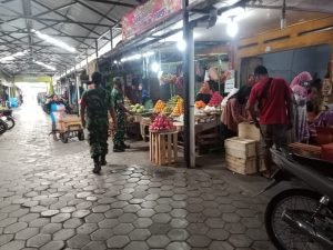 Anggota babinsa Koramil 01/Sragen Sertu Daryanto mengatakan Patroli tersebut dengan sasaran para penguna jalan serta pengunjung pasar, serta pembagian masker bagi warga yang tidak menggunakan masker ,Pembagian masker di laksanakan babinsa di pasar bunder sragen kota.